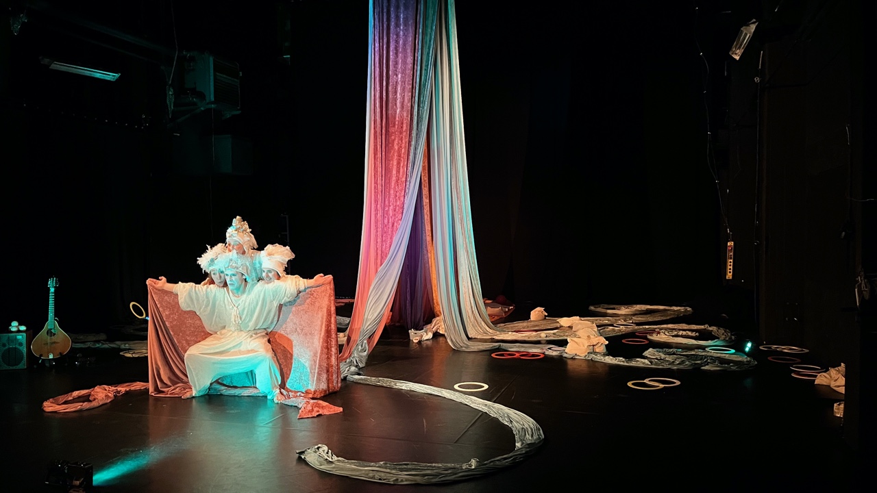 En drömsk och humoristisk cirkusföreställning där barnen är delaktiga. Fyra artister